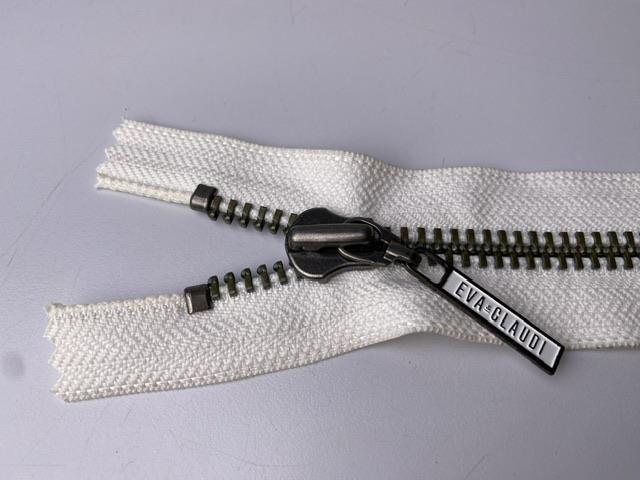 Lynlås - ikke delbar, offwhite med meget grove metaltænder, 15 cm