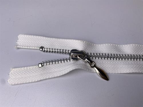 Lynlås - ikke delbar, offwhite med metaltænder, 14 cm
