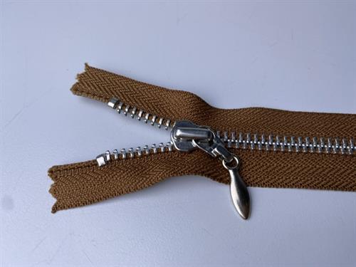 Lynlås - ikke delbar, mørk nougat med metaltænder, 13 cm