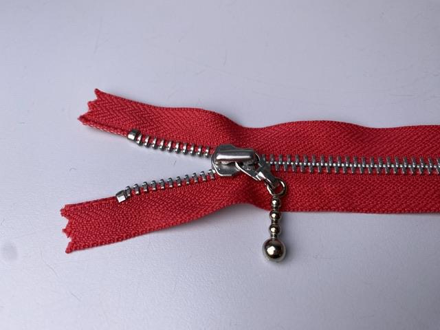 Lynlås - ikke delbar, red ish med metaltænder, 13 cm