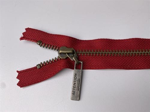 Lynlås - ikke delbar, mørk rød med metaltænder, 13 cm
