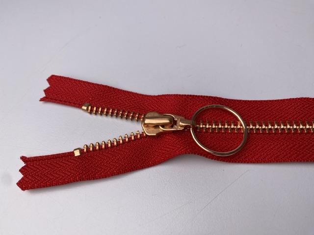 Lynlås - ikke delbar, rød med metaltænder, 11 cm