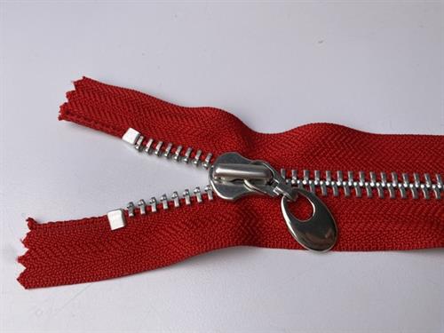 Lynlås - ikke delbar, rød med grove metaltænder, 15 cm