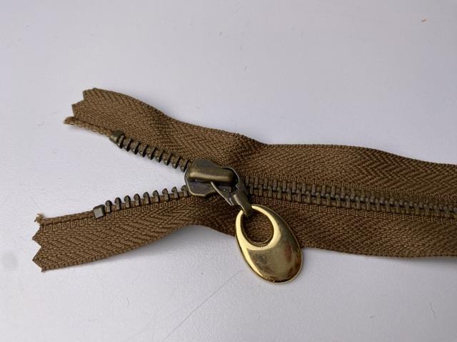 Lynlås - ikke delbar, brun med metaltænder, 39 cm