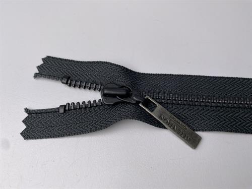 Lynlås - ikke delbar, mørk gråblå med metaltænder, 13 cm