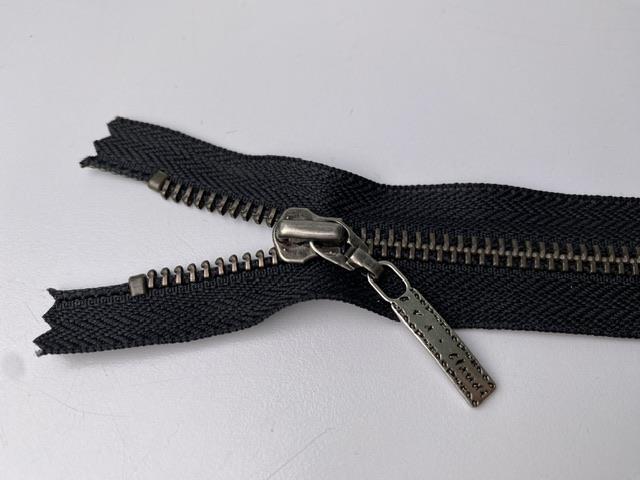 Lynlås - ikke delbar, sort med metaltænder, 13 cm