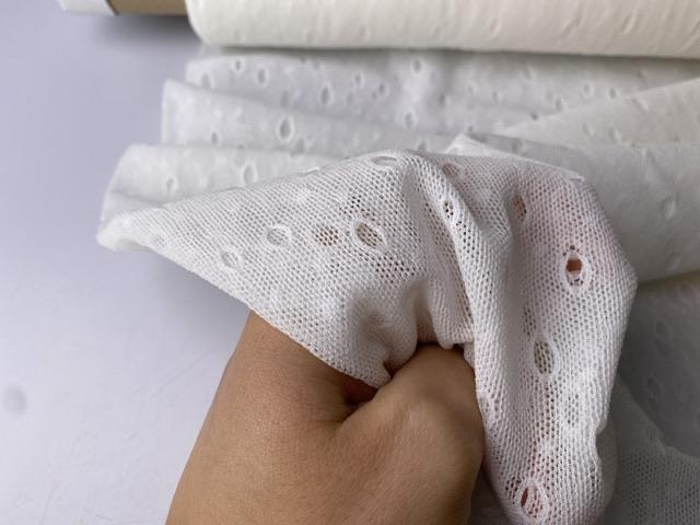 Drønlækker strækbar mesh med små huller i offwhite. Kvaliteten er lækker, og jeg drømmer om en tætsiddende bluse.