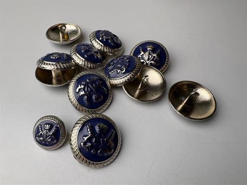 Metal knap - fint marineblåt våbenskjolds motiv, 23 mm