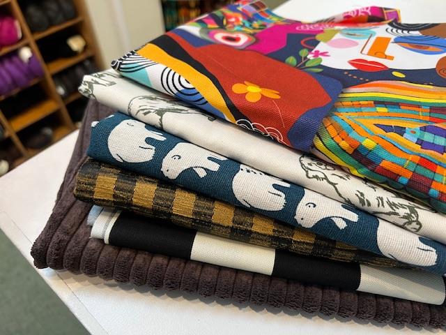 Bomuldsjersey, isoli, fastvævet viscose, hør, poplin, fastvævet bomuld, fleece, gauze og fløjl