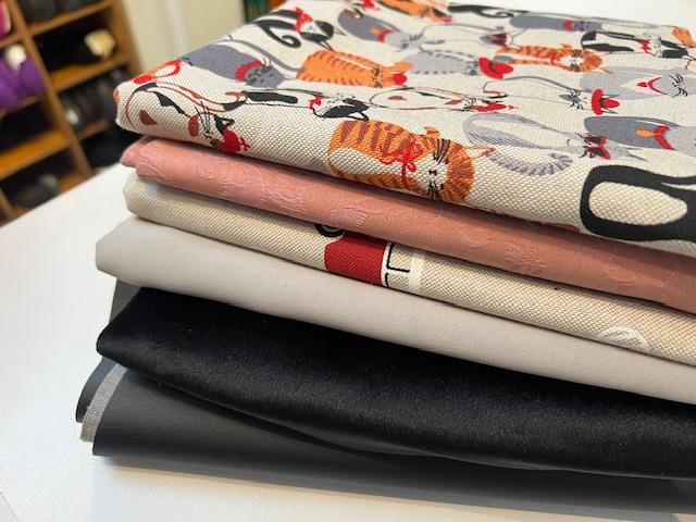 Bomuldsjersey, isoli, fastvævet viscose, hør, poplin, fastvævet bomuld, fleece, gauze og fløjl