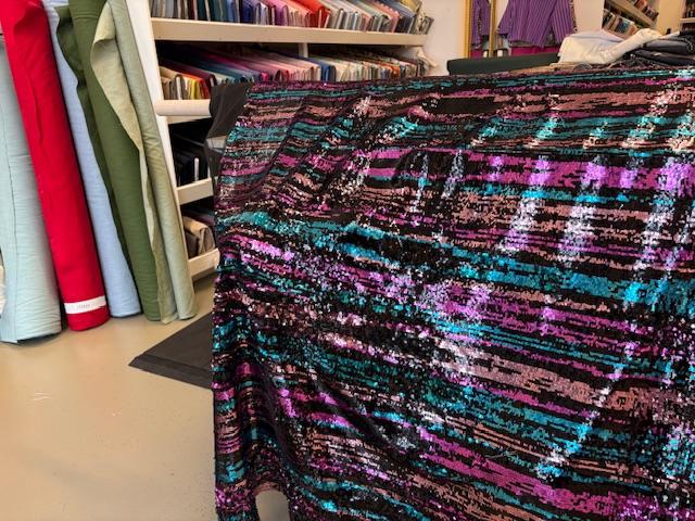 Wow altså... det smukkeste pailletstof på blød tyl bund med flotte pailletter i de fineste toner. Meterprisen for stoffet vil normalvis være 200 kr./meter, men vi har mulighed for at sælge det til kun 120 kr./meter. Vi skal alle klædes på til fest med pailletter fra top til tå.