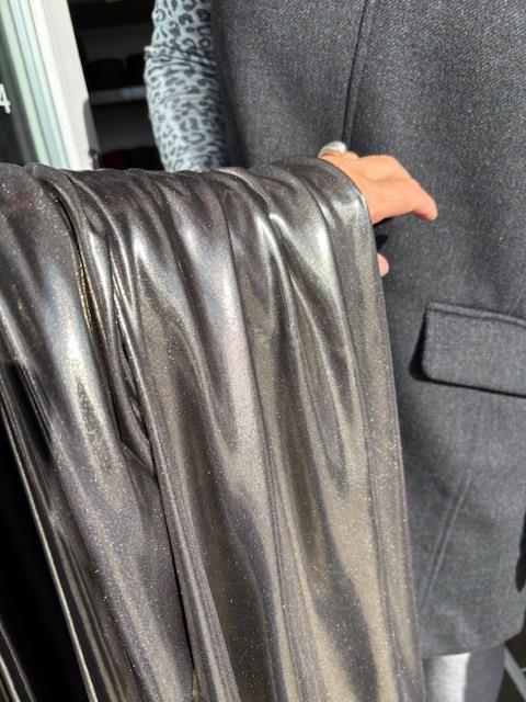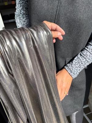Super fin polyesterjersey med et fantastisk flot glitrende udseende. Metaltrådene er så fine, at hele overfladen er changerende i sølv.