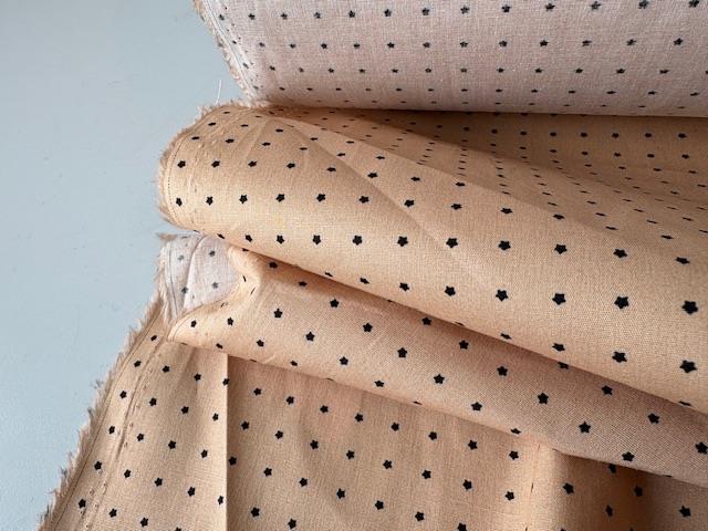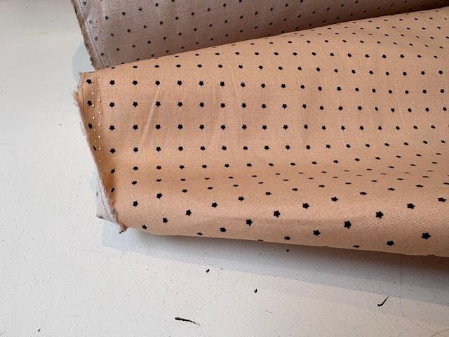 Poplin med stræk - blid beige med micro stjerner i top kvalitet