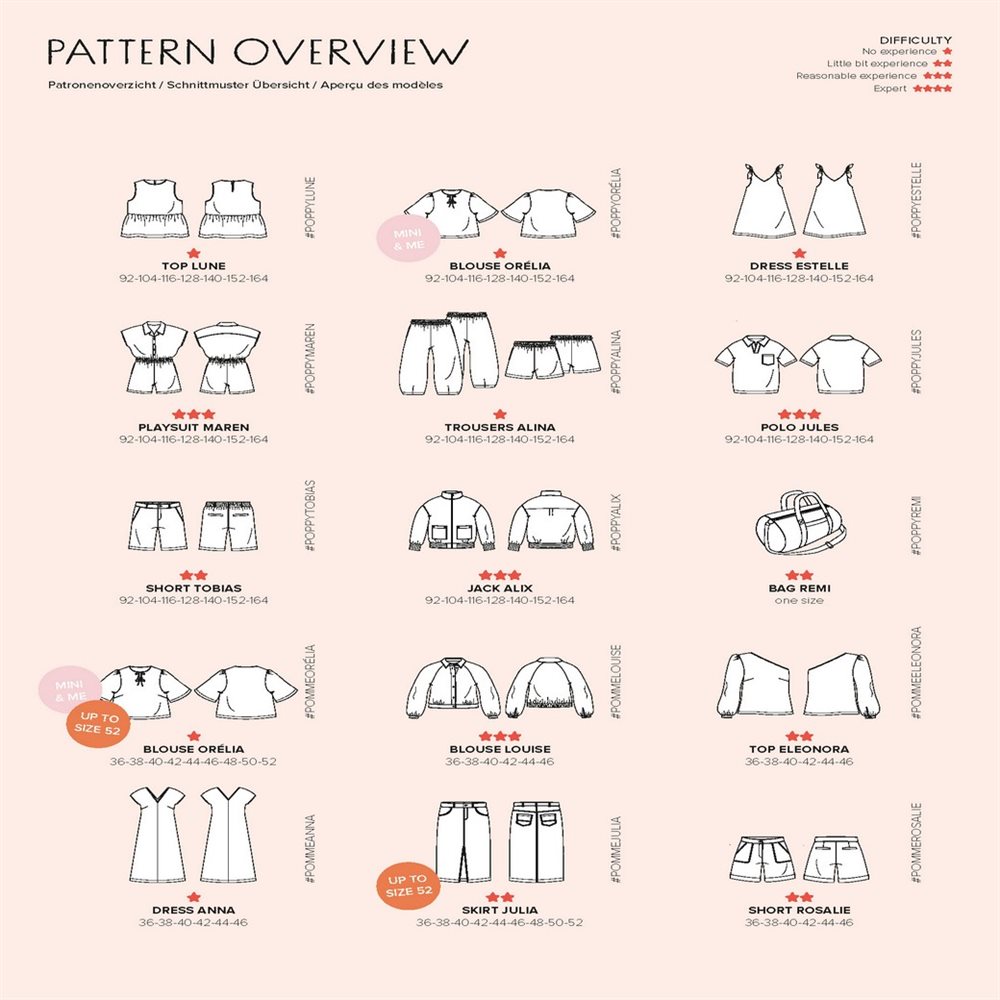 Poppy mønsterblad edition 26 (til str. 92-164 og str. 36-52)
