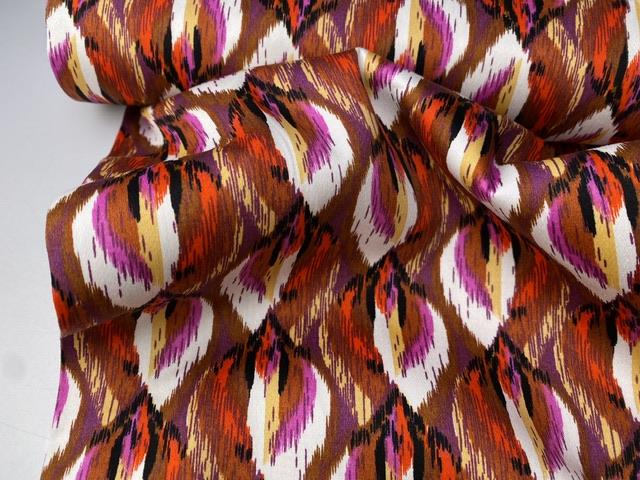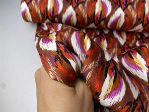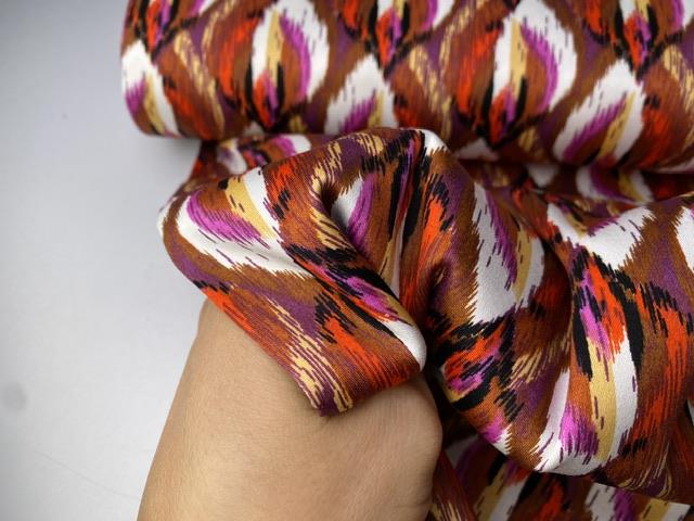 Satinvævet bomuld med stræk - zig zag mønster i fede farver