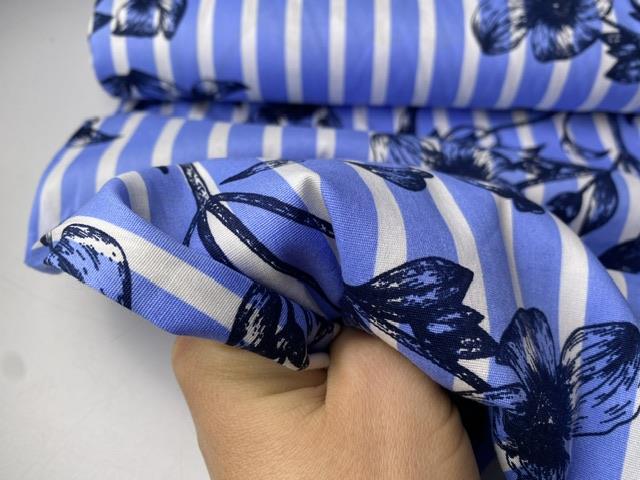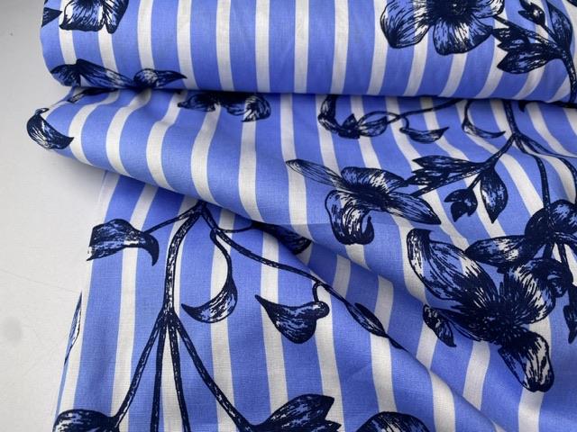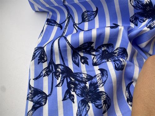 Satinvævet bomuld med stræk - stripe design baby blue