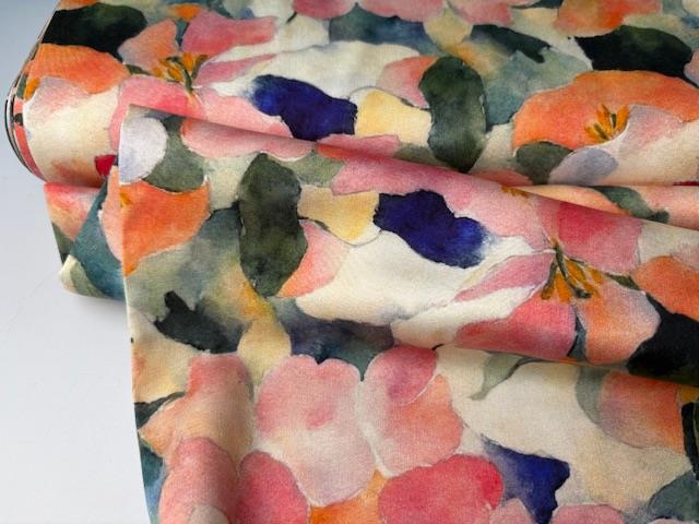 Fantastisk lækker fastvævet viscose med skønne blomster og flot fald.