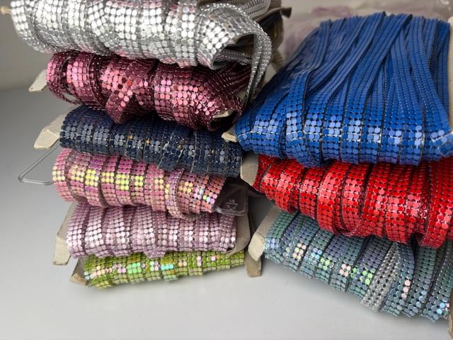Similibånd - Blank kobolt blå limegrøn med nitter, til påstrygning