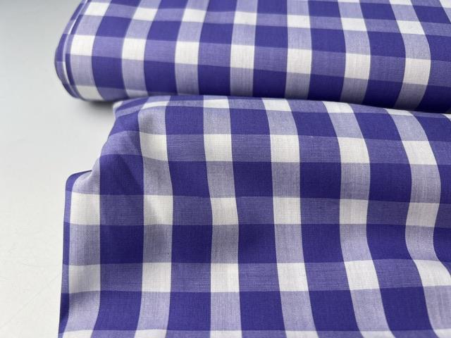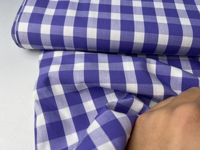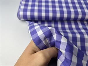 Skjortepoplin - garnfarvede tern i mørk lavendelblå og offwhite, med fejl
