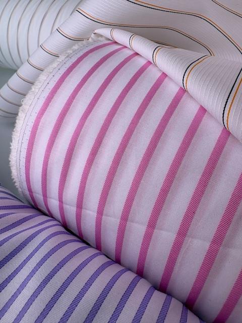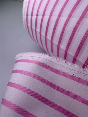 Skjortepoplin - garnfarvede pink striber på hvid bund