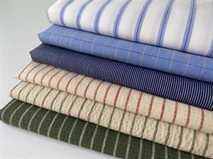Bomuldsjersey, isoli, fastvævet viscose, hør, poplin, fastvævet bomuld, fleece, gauze og fløjl