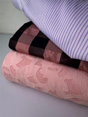 Skjortepoplin - strukturvævet med lilla striber