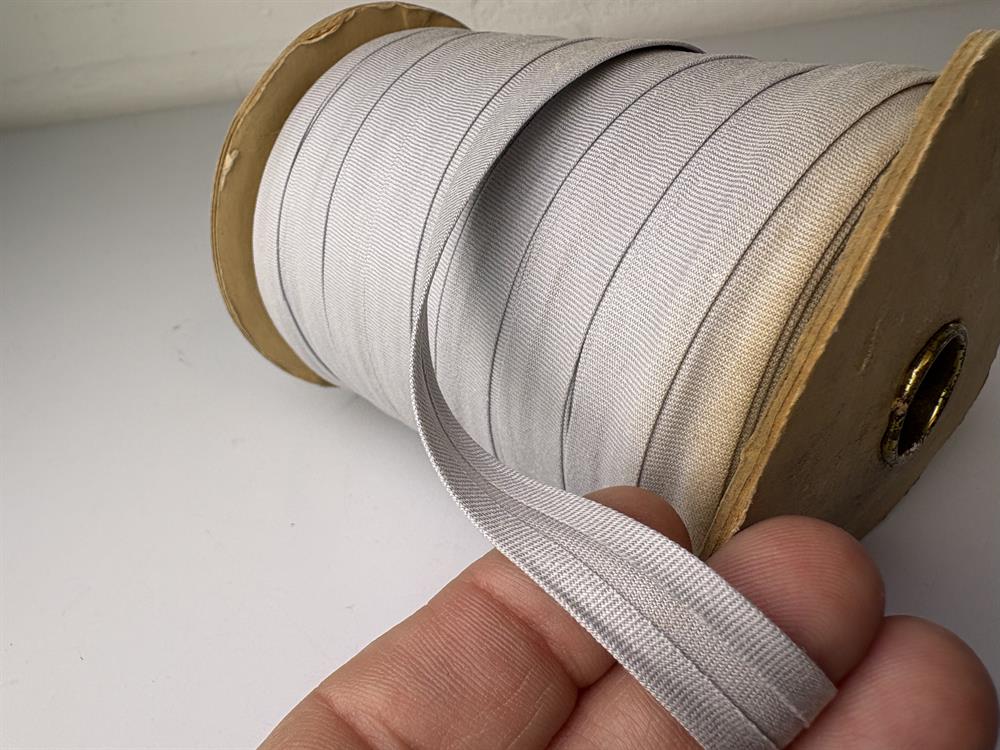 Vi har købt et større parti brede kantbånd fra en fabrik der har syet sengetæpper. De har brugt båndene til at sy brede kanter rundt om tæpperne, og det er de fleste også fantastiske til.