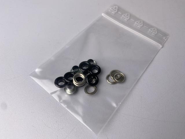 Små snøreringe i metal.