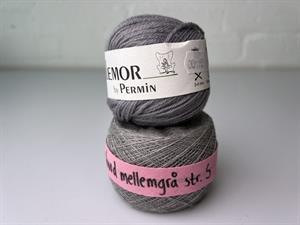 Garnkit i en flot mellemgrå til Sophie hood fra Petiteknit - her garn til str. S. Strikkeopskrift skal købes separat her.