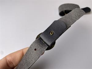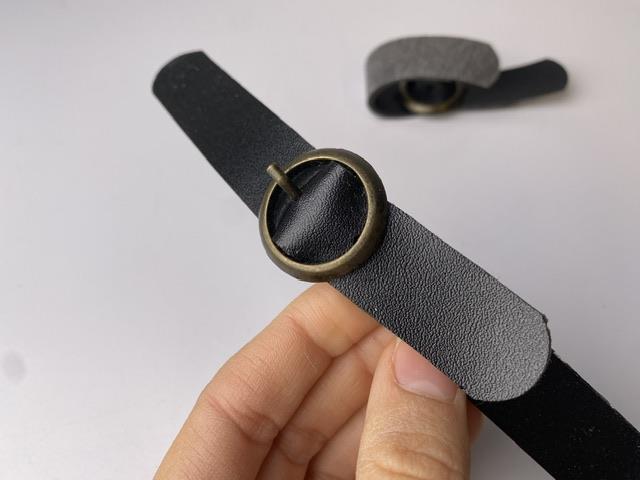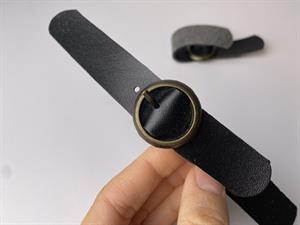 Lukke anordning i sort læder look. Bredden på båndet er ca. 19 mm.