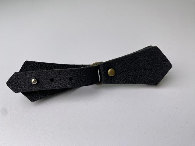 Lukke anordning i sort læder look. Længden er ca. 10,5-12 cm.
