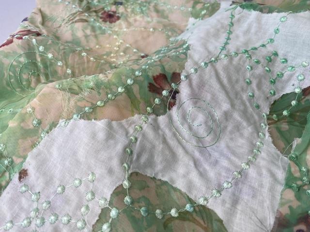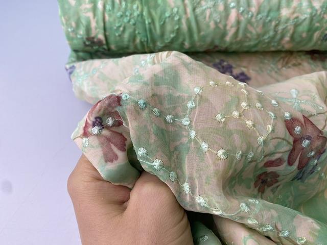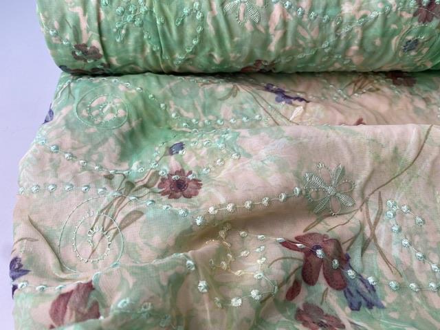 Meget smuk chiffon med bagbeklædning i bomuld. Den ville være så skøn her til forår og sommer. Vi drømmer om lette kjoler og nederdele.