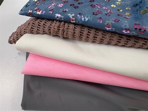 Bomuldsjersey, isoli, fastvævet viscose, hør, poplin, fastvævet bomuld, fleece, gauze og fløjl