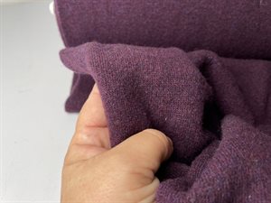 Meget lækker tætstrikket uld i lækker mørk lilla meleret .. det er blødt og ikke kradsende. Stoffet/strikken har en smule tykkelse og er velegnet til cardigans eller noget lidt sweat agtigt.