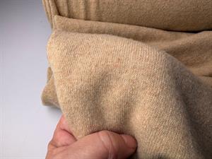 Meget lækker tætstrikket uld i lækker violet meleret .. det er blødt og ikke kradsende. Stoffet/strikken har en smule tykkelse og er velegnet til cardigans eller noget lidt sweat agtigt.