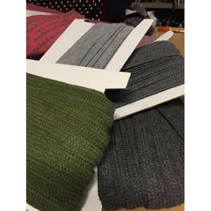 33 mm bredt strikket kantbånd, påsyet fylder det ca 1,5 cm ...