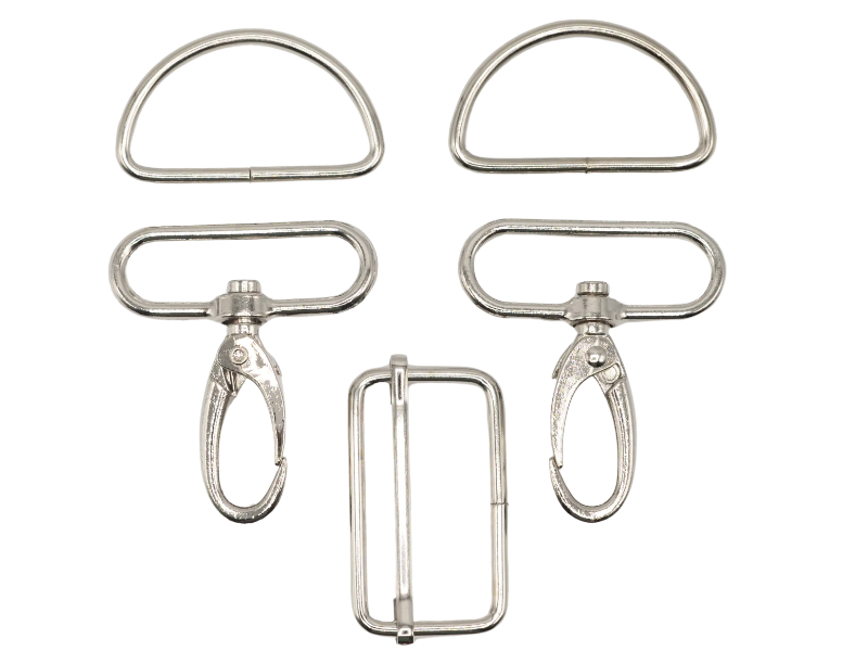 Taske accessories - karabinhage, regulator og d-ringe i sølv, 40 mm