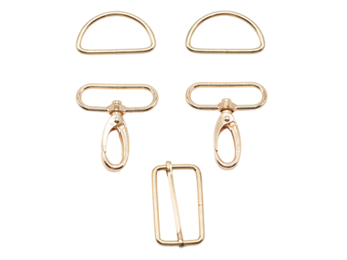 Taske accessories - karabinhage, regulator og d-ringe i guld, 30 mm