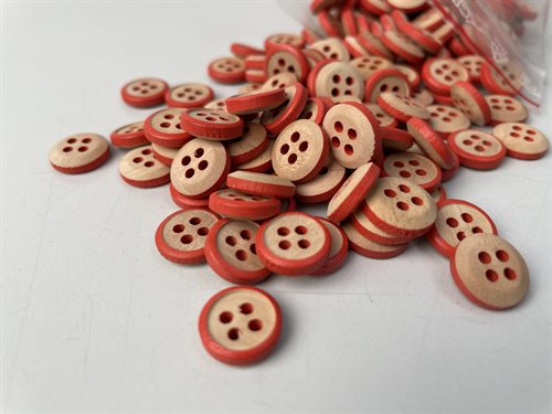 Træknap - med farvet kant i rød, 12 mm (10 stk)