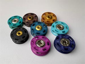 Du kan bruge knapperne til alt dit syarbejde, til en dejlig strikket cardigan, til kunstværker som øjne, som dekoration på stort som småt, som øje i en blomst, på broderier... Husk du også kan sy dine knapper i på dekorativ vis. Det kunne være med farvet tråd, i blomsterform, som et z, et kryds eller andet.