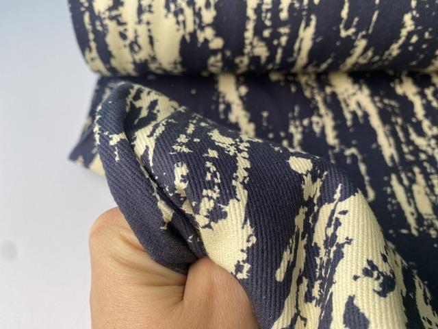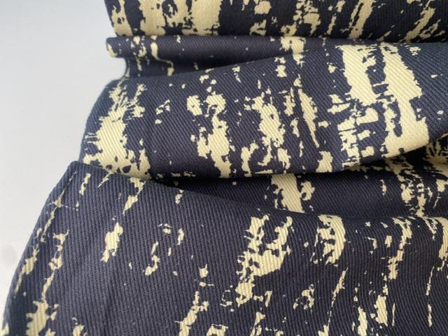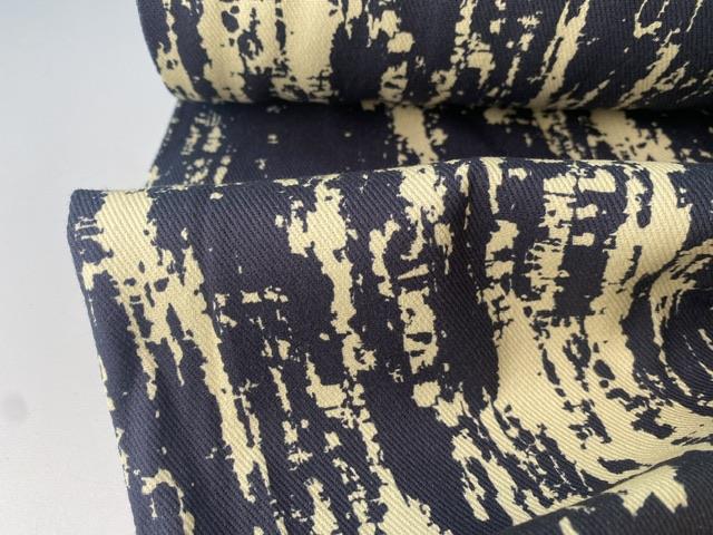 Drønlækker twillvævet bomuld med flot digital print. Utrolig skøn og i mellemkraftig kvalitet. Jeg drømmer straks om et par bukser eller en jakkesag.