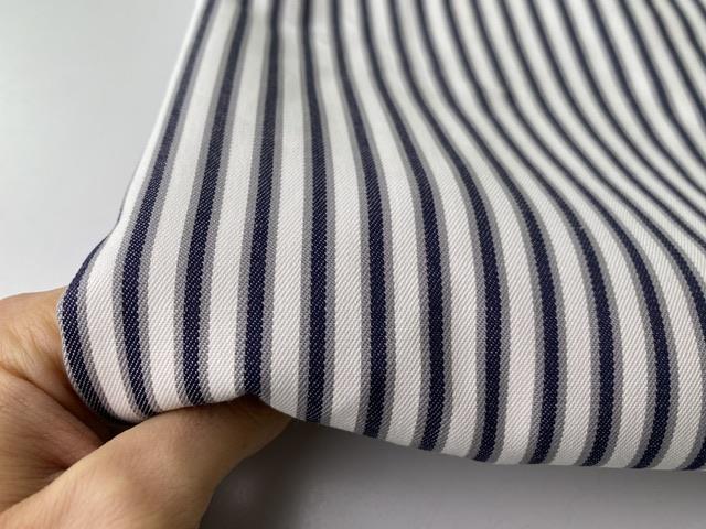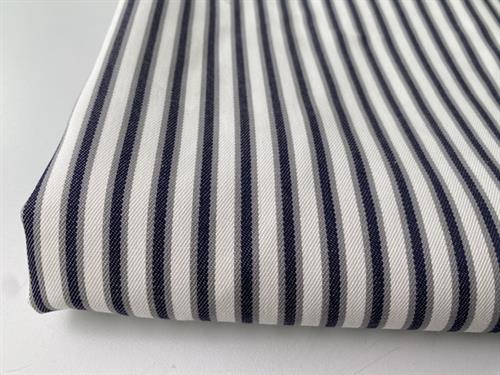 Skønne partivarer til en god pris er netop landet fra produktionsoverskud. Heriblandt denne fantastiske twillvævede bomuld, som er helt perfekt til beklædning. Striberne er så skønne, og så er kvaliteten i top.