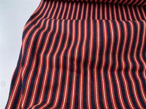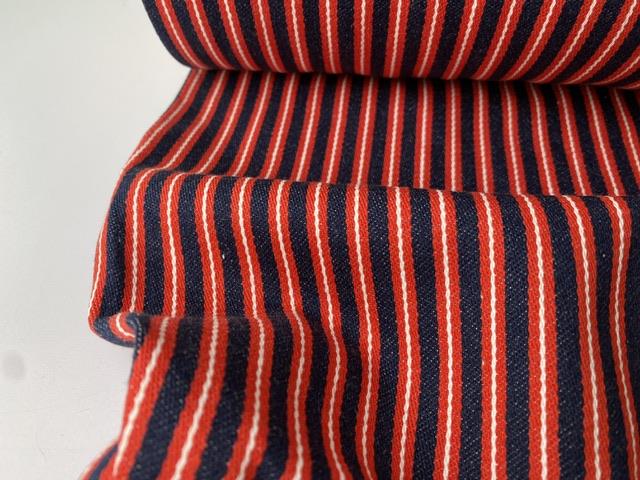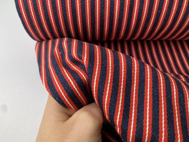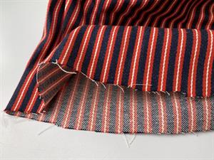 Twillvævet denim - klassiske striber i rød og mørk denimblå