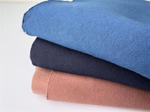 Bomuldsjersey, isoli, fastvævet viscose, hør, poplin, fastvævet bomuld, fleece, gauze og fløjl