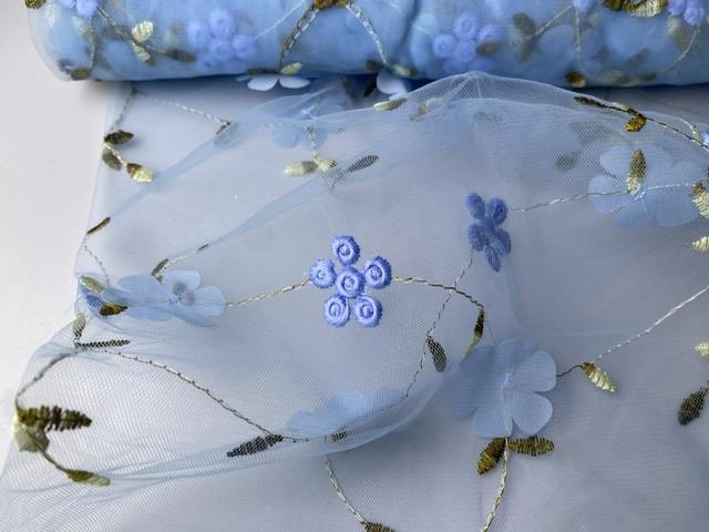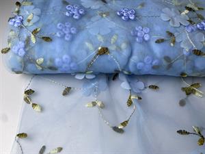 Tyl - blå med smukke blomster