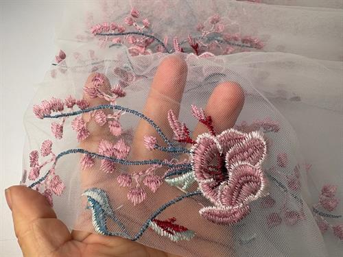 Vi har både stiv tyl og blød tyl. Det ligger i ordene, at den stive tyl er stiv og med hold, og at den bløde tyl er blød og med et let fald. Tyl er et åbent og netlignende stof, som bruges til kostumer, festkjoler, skørter, unikke dekorationer og alt imellem.