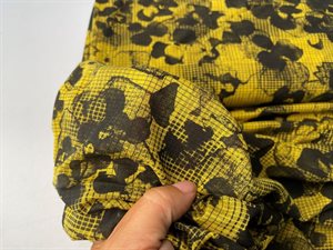 Tynd viscosejersey - sorte blomster på senneps ternet bund