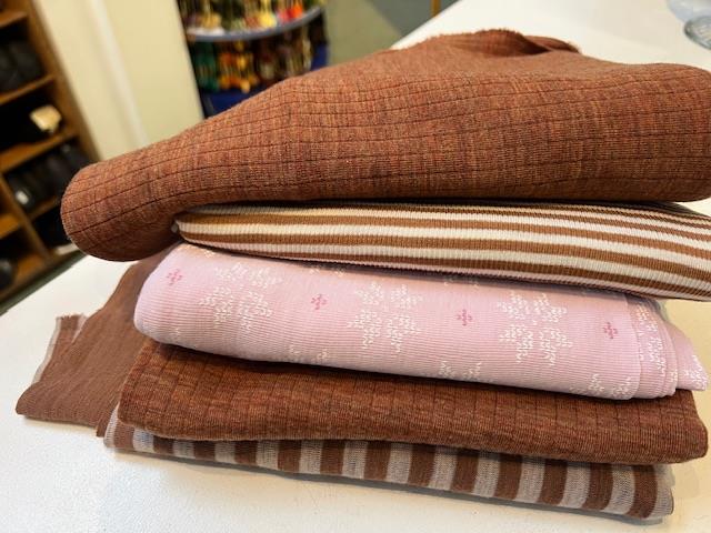 Bomuldsjersey, isoli, fastvævet viscose, hør, poplin, fastvævet bomuld, fleece, gauze og fløjl