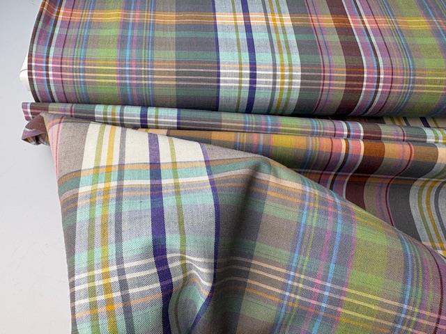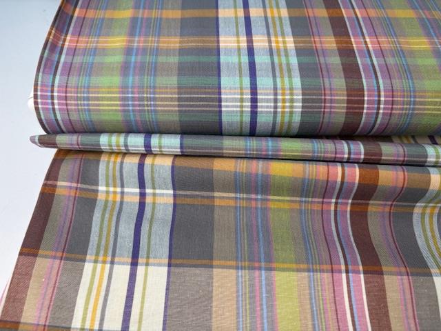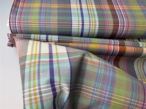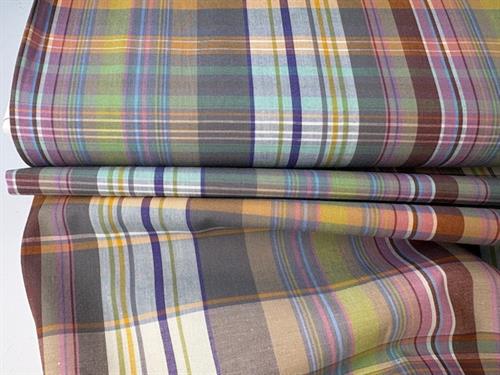 Vævet bomuldspoplin - garnfarvede tern og striber i drønfede farver