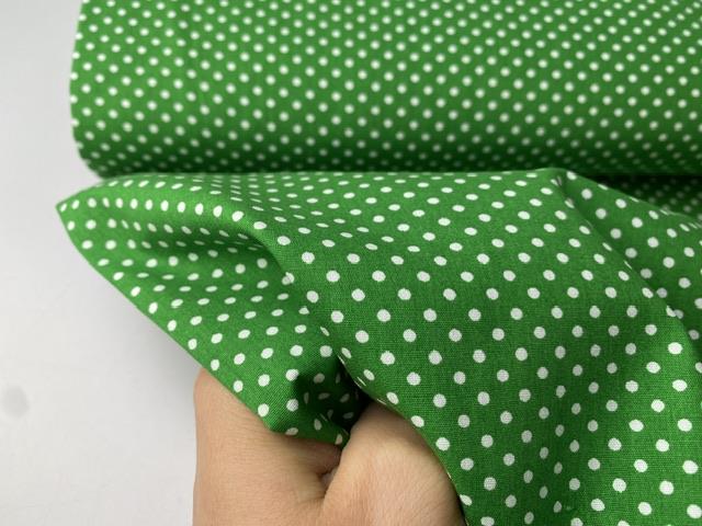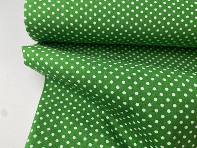 Vævet bomuldspoplin - hvide prikker på frisk grøn bund